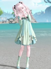 就是最新出的时装,好像叫“玉辉”?感觉这个绿挺清新素雅的就入了,刷副本的时候看到同队的穿了套染过色的好像也挺香?但是看不清具体是咋样的,姐妹们有染了这套的发一个分享呗?就是萝莉体型的那一套。如果好看的话我又想把职业换回造型师了哈哈哈~最后还得夸夸天谕,出衣服真的挺有一手的,最近的这几套我都挺喜欢的,明明有这么多玩法却被我硬生生地完成了换装游戏23333