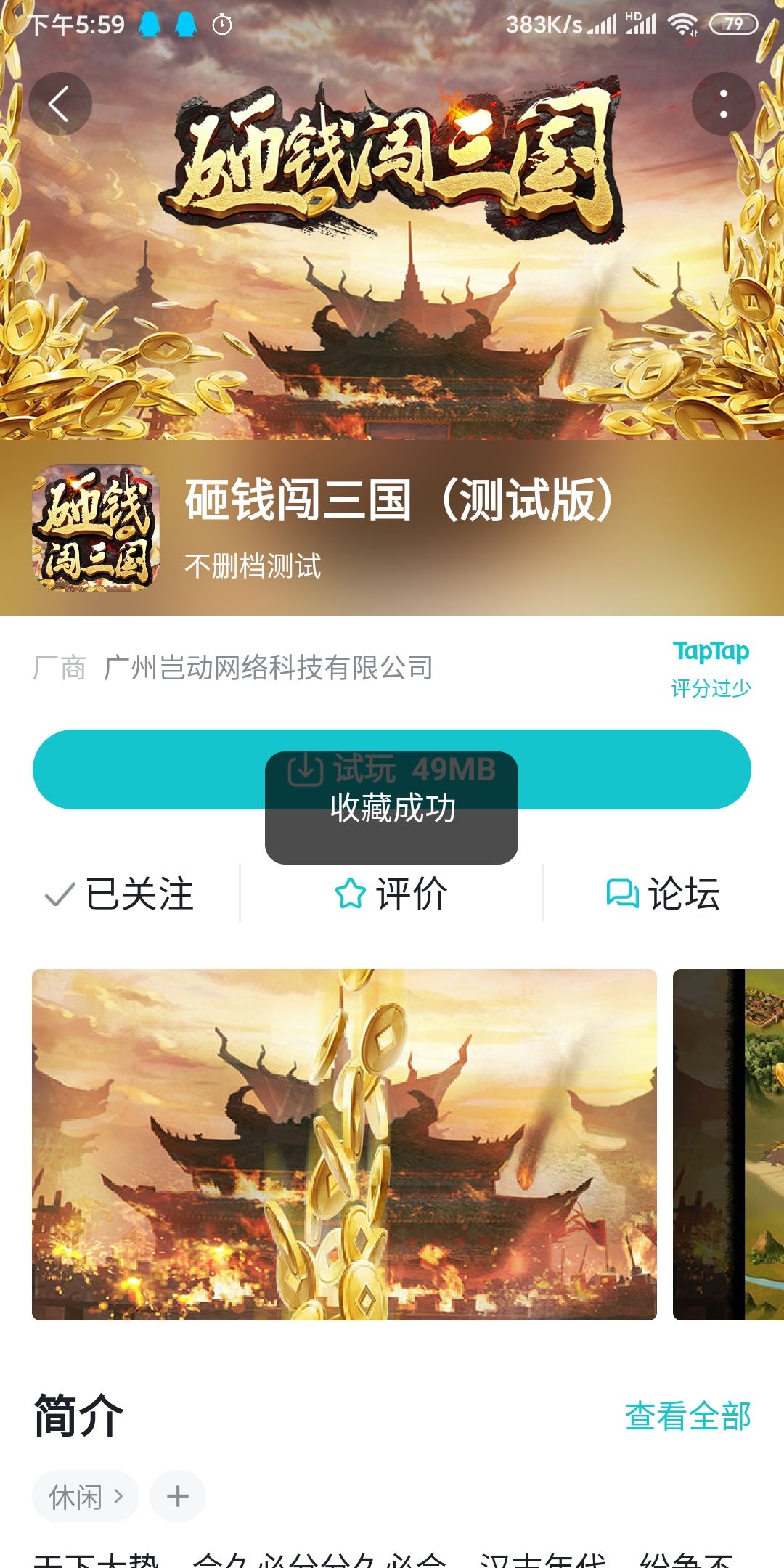 砸钱闯三国第一个关注在此发了一个帖子留下来证明截图