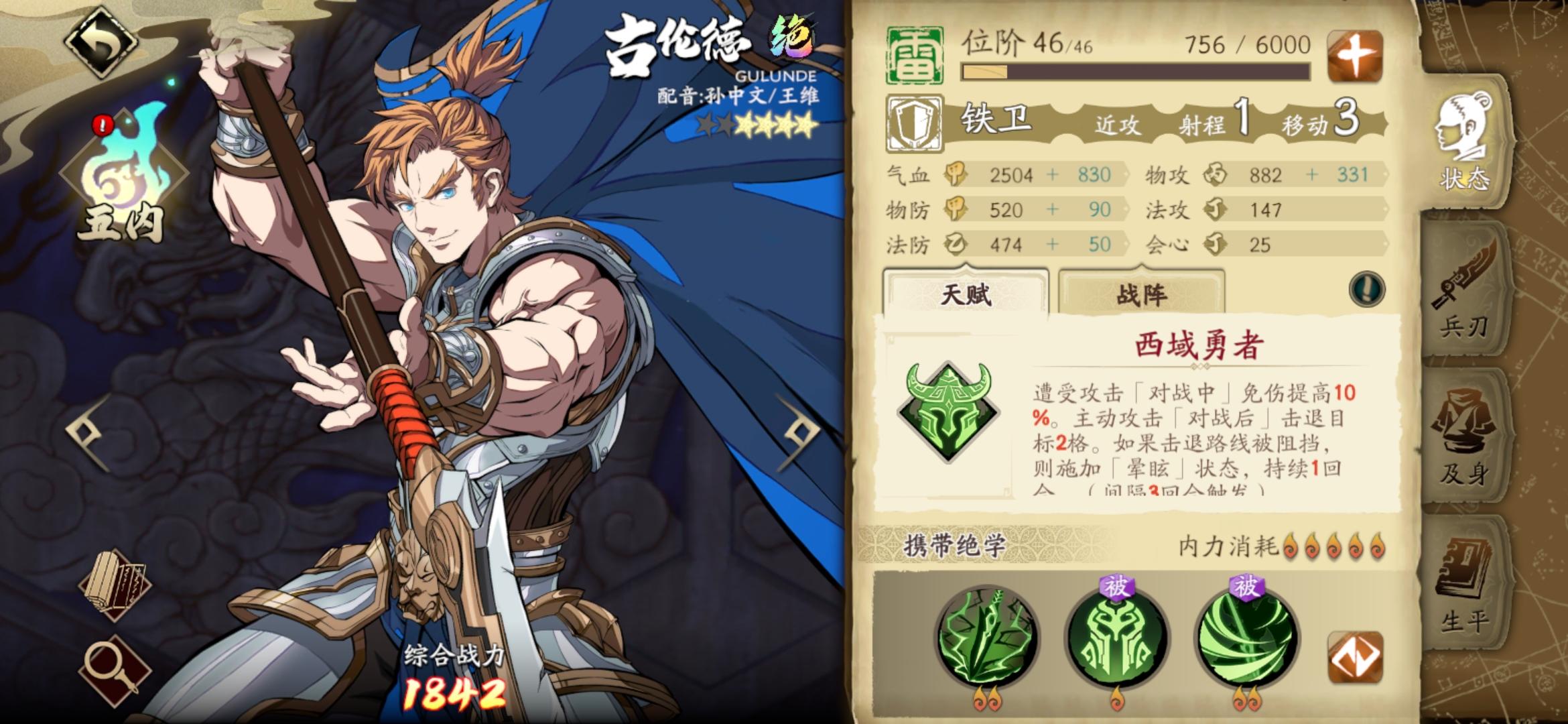 打法要点:一回合,古伦德右路踩buff再动,技能放晕第一个小怪,左路黄埔申和韩无砂干掉,古伦德再护卫打残第二个小怪。