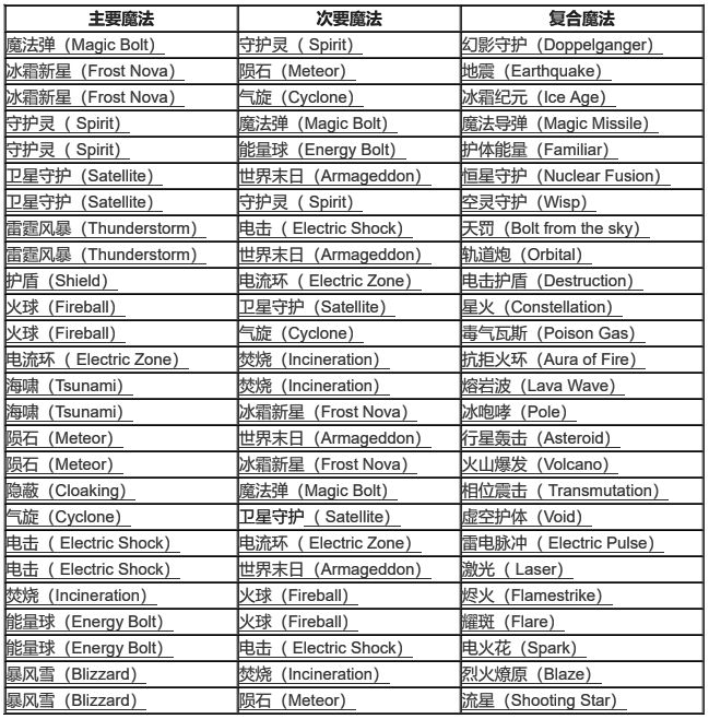 因为新版本部分魔法效果更改,以及新增了魔法,所以这个表有部分已经过时了。但是我没时间更新,所以放个wiki在这。