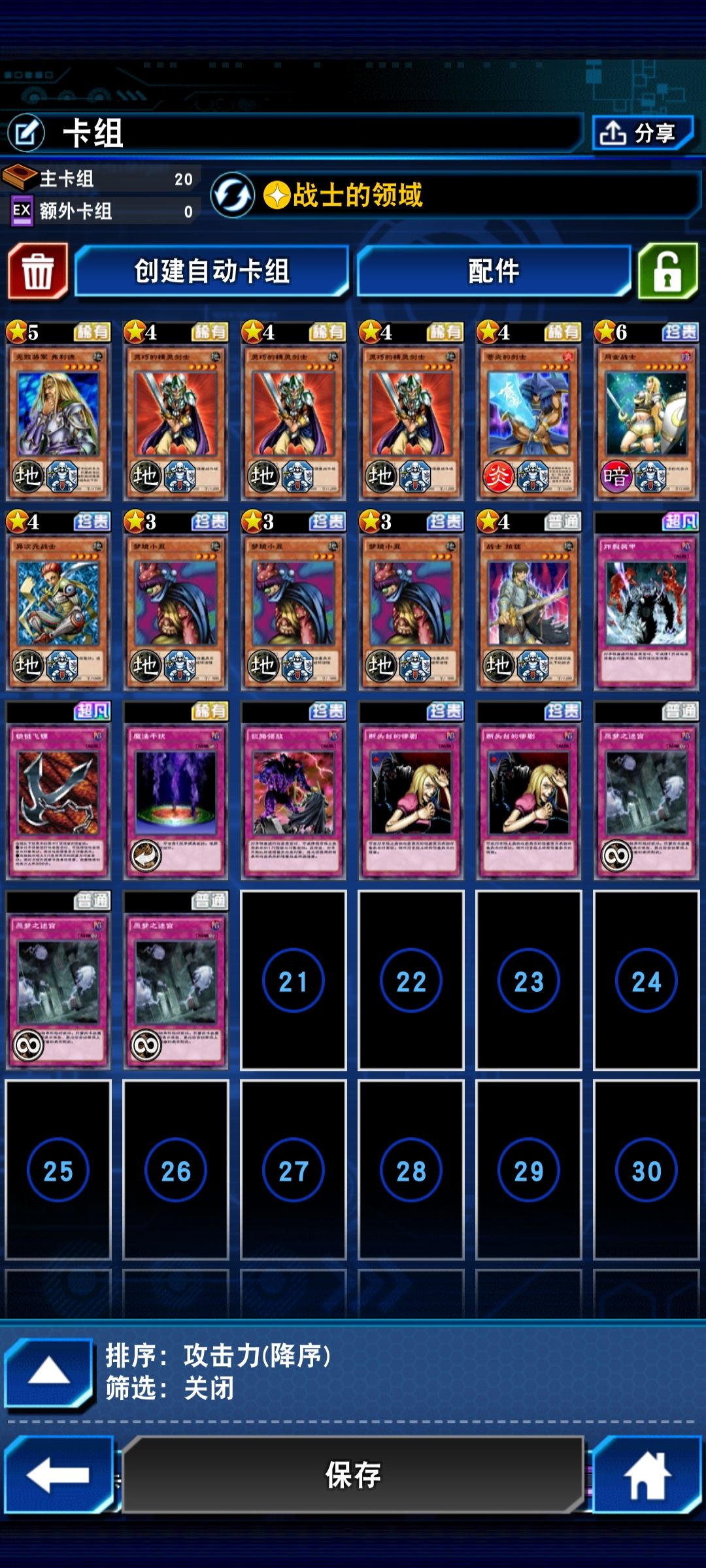 里面的核心卡只有三张灵巧的精灵剑士,三张梦境小丑,三张噩梦迷宫,最好带一张战士拉兹和一个异次元战士(被真沉默魔导和lv8打中后心情愉悦),和一张断头台的惨案,其他的都可以看情况加卡,所加卡只有一个目的,就是保护自己的噩梦迷宫和梦境小丑(比如可以加镜幕,伊塔库亚的暴风,魔法干扰等),注意不要带魔法卡!