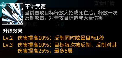 神宫有咲会标记当前普攻的目标,当其释放大招或死亡后,会发动一次反制攻击,造成大量伤害。基于敌人释放大招后触发反制的特征,神宫在面对回能速度快或初始能量高的敌人时具有明显克制优势;而敌人死亡后,神宫会对下个普攻目标释放反制攻击,配合神宫极致单攻的特征,很容易进入连续收割的状态。被动升级后,反制效果还附加1秒眩晕,在造成伤害之余也施加一定控制效果;被动提升到满级后,如果神宫对同一个目标连续发动反制,则反制伤害会逐步递增,该效果在面对Boss类怪物时具有强大作用。