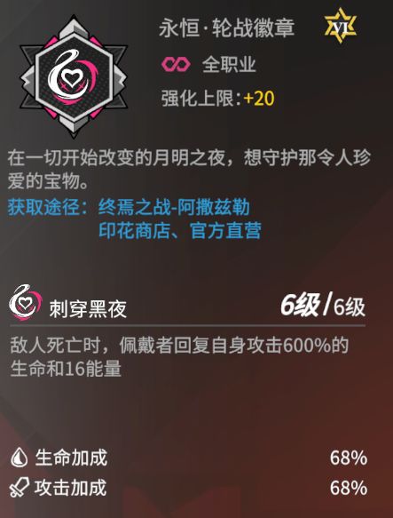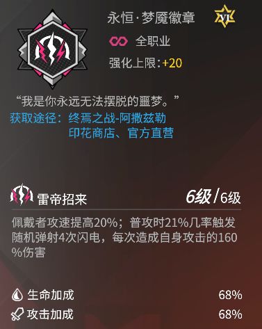 属性和徽章配搭推荐基于神宫大招必定暴击和几率触发额外伤害的特征,暴击伤害和效果命中属性对神宫具有明显的提升效果,除此之外,也可追求攻击属性来提供神宫整体输出。徽章方面,轮战徽章可以让神宫拥有更强的连续收割能力,神宫攻击的目标死亡后,神宫不仅可触发反制也比较容易再追加大招,形成恐怖的连续输出;除此之外,也可选择常规的梦魇徽章和魅影徽章,搭配神宫专属布景能进一步放大威力。