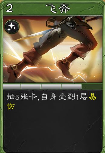 “飞奔”(受到易伤并抽取卡牌,主要是前期卡组很杂要利用抽取卡牌来抽到自己想要的护甲牌来秒boos)