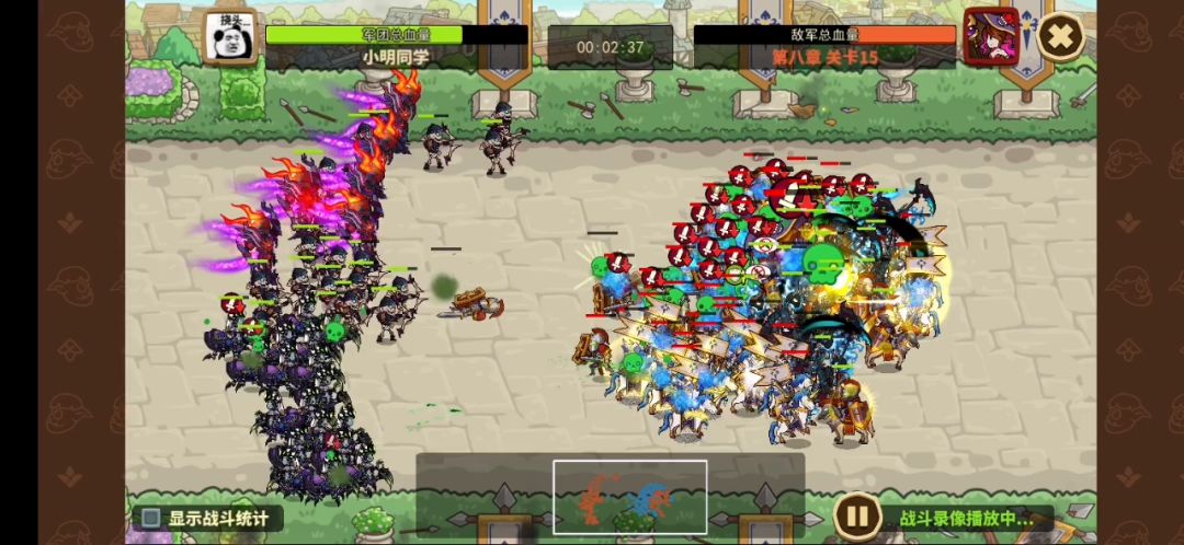 这是8-15,影魔s+,其他是s。全体40级,不过影魔升到5阶。装备影魔全40,其他30。还有一点注意,这个有点看脸,翻车了几次,死骑追着boss打就能打赢,要多试几次。