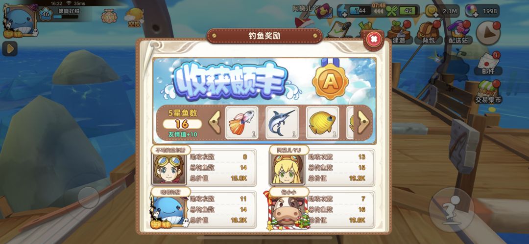 这个人在线的截图因为队长解散太快没有截到 但是确实是一直在线的 因为可以看他的钓鱼数 不是挂机钓鱼应该的数量 还穿着小鱼套 我真的以为不是坑 结果又踩了 我现在发誓 在和等低级的组队我就是猪头
