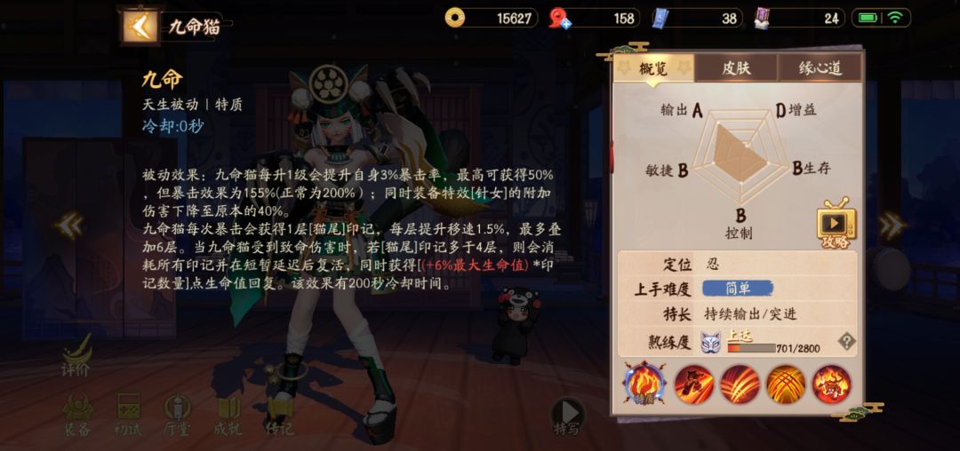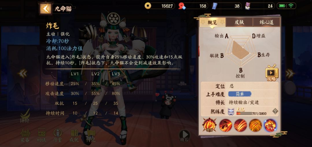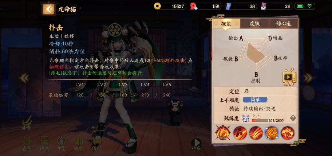 从技能就可以看出来,猫猫就是突出一个简单粗暴,有手就行。虽然不如鬼切,海忍,傀儡师这些灵活多变。但简单就是最适合新手的。这也是我为什么说猫猫是鱼塘畅游者的原因。