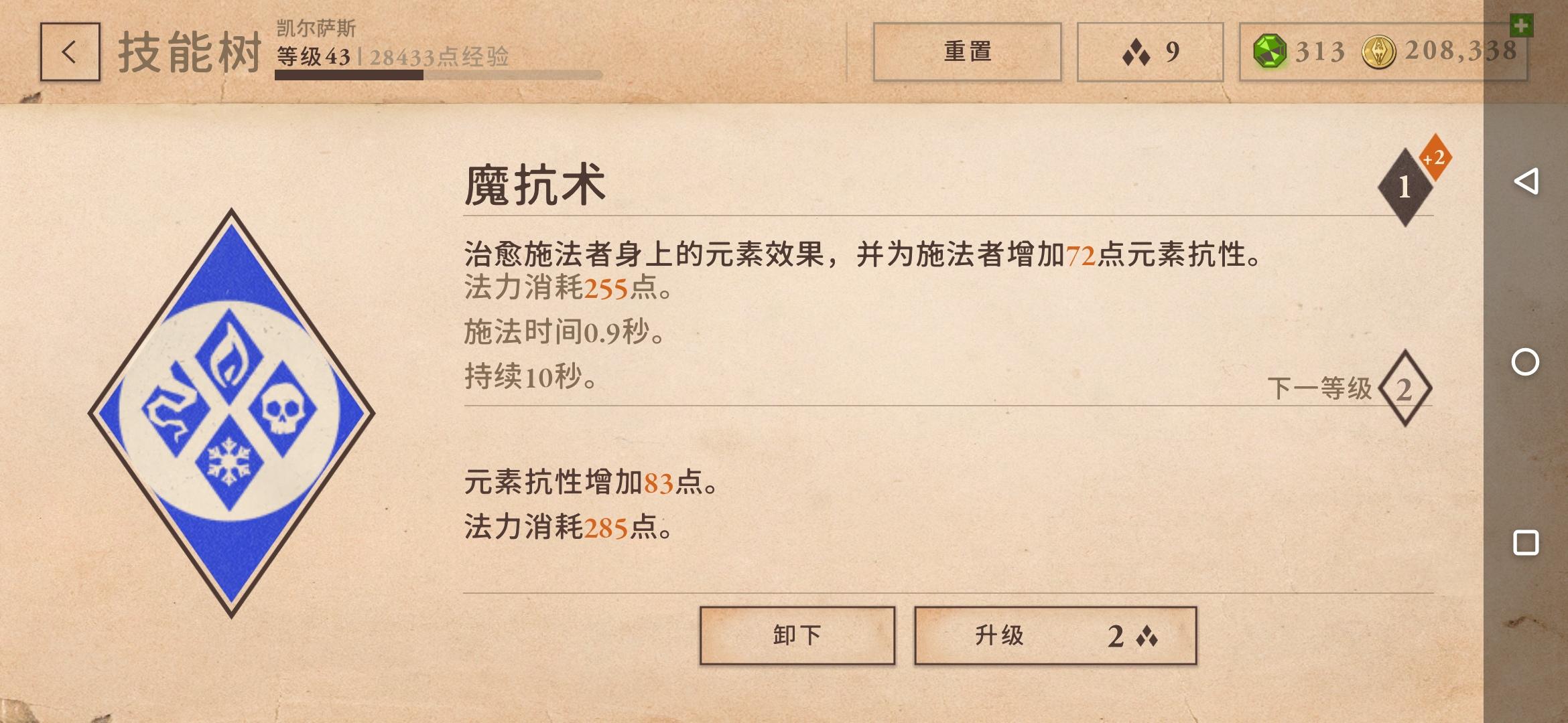 魔抗术等级不用加太高,感觉3级就可以了,等级高虽然效果更好,但是消耗大啊,法系辅助的话是不会投入太多的法系点数,要不然超出使用蓝的上限就尴尬了。