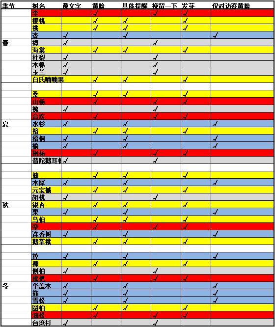 (补充,月亮树性格同杏,星星树性格同玉兰,蓝花楹性格同杏,凤凰木性格同李)