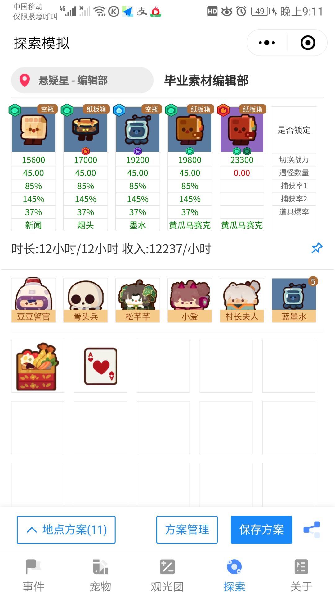 编辑部有个缺陷就是战力可能不够要高练度,所以我建议二种改进方案:1.小爱换成有始有终每小时收益从12237变成12200,差异不大(较推荐这种);2.可以4王子加可乐一个周期刷失物招领局,一个周期刷编辑部,解放出来一队去随便抓宠完也行。