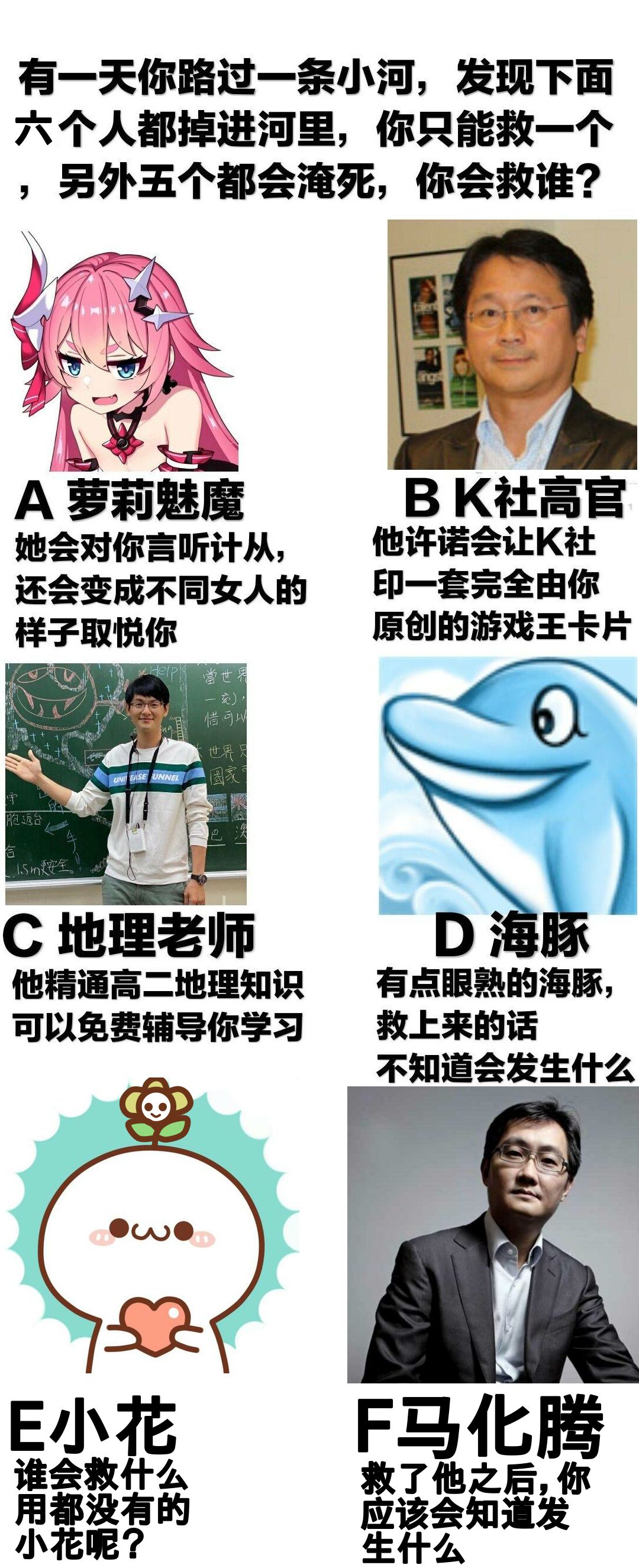 当六个人掉进河里,你会救谁呢