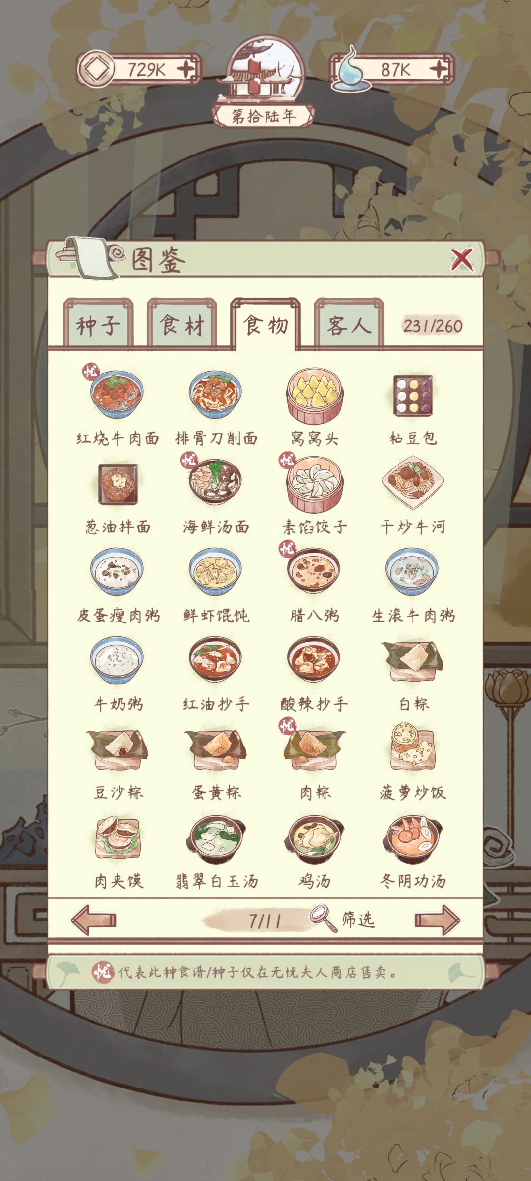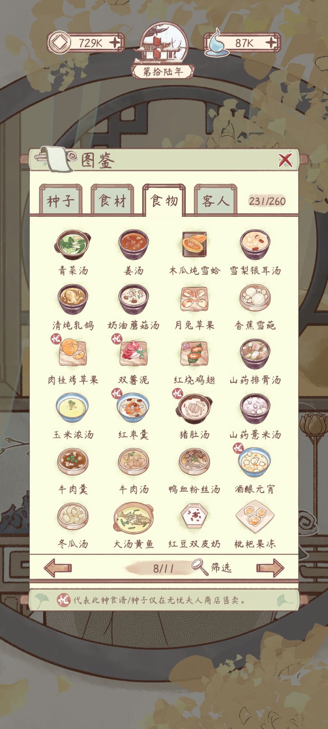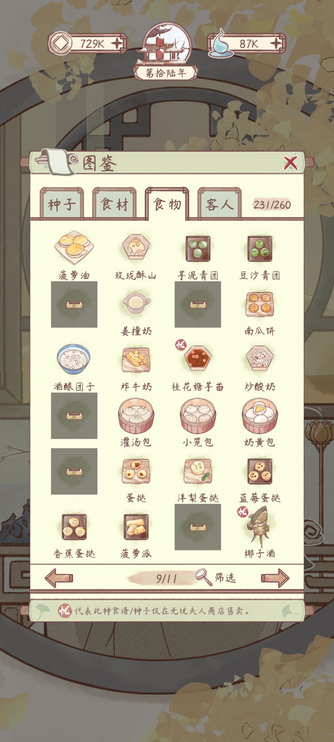花***粥有菜谱,材料不够还没有做。其他空缺的是成就菜谱
