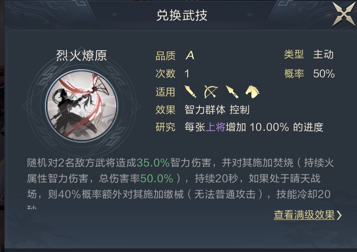 B级可用武将技不多,前期武技点有限,分享2条选出卡池中合适B级和A技武技的技巧: