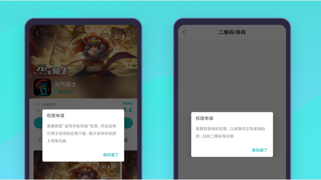 现在TapTap在获取用户设备的系统权限(相机、存储等)之前,会专门说明索要此权限是用于哪些功能的哦,方便Taper了解信息。一般情况下会在从未使用过相关功能的情况下弹出该信息说明弹窗。