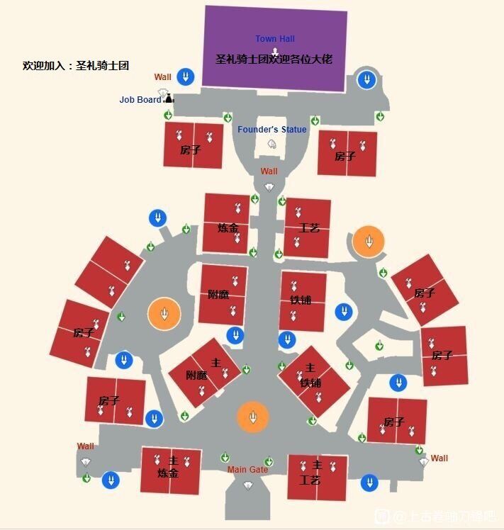为了减少跑动方便其他玩家找到主铺,建议按我这个思路建筑,不然别人进去找店很花时间。另外,圣礼骑士团欢迎各位大佬!