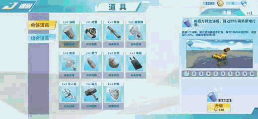 1.油桶:向后方释放油桶,路过的车辆将原地打转。