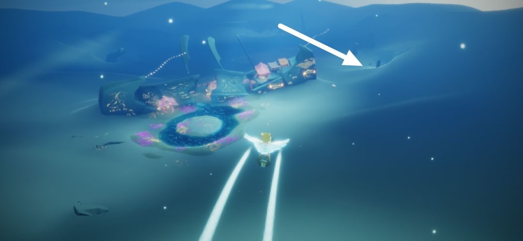到了隐藏图后飞一段时间就能看到方舟大船,右侧也就是箭头所指位置飞过去能量不够的就跑过去到了洞口往里走