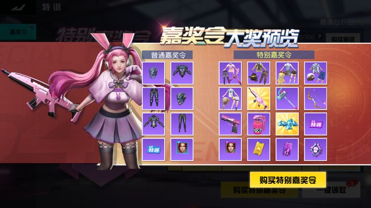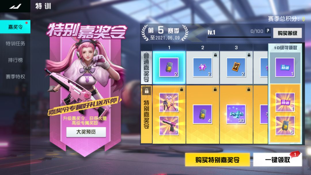 开启S5赛季特别嘉奖令,获得特训积分即可领取对应奖励。本期特别嘉奖令更新了新的外观:包括甘蜜甜梦,深渊噩梦,艺术畅想和青葱回忆系列人物外观,沙漠 之鹰枪械皮肤梦幻轮转和手雷皮肤梦幻爆破,复合弓皮肤梦幻惊鸿,苍蝇拍皮肤梦幻挥舞,M4 A1皮肤梦幻射击等海量精美奖励加入;