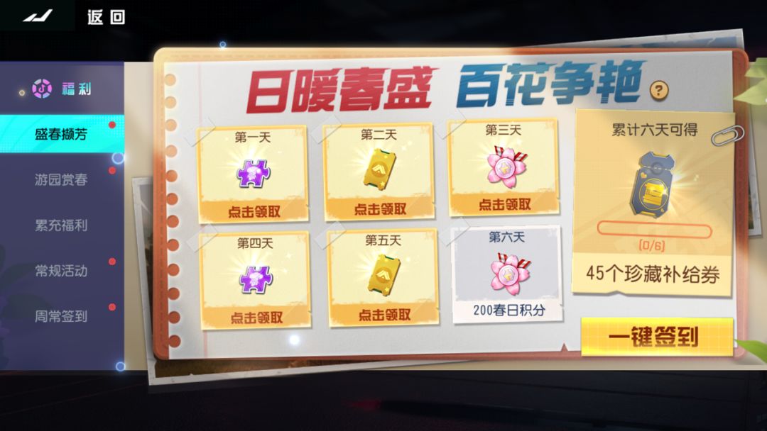 活动期间登陆游戏前往“活动-盛春撷芳”界面即可领取当日奖励。累计登录6天可以获得终极大奖。