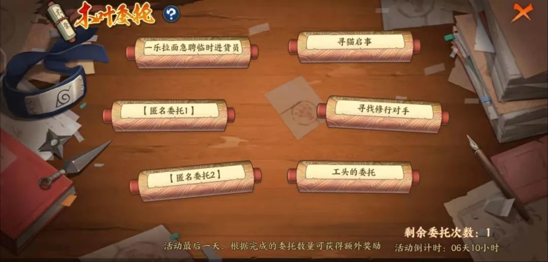 ⭐活动说明:木叶村近期又热闹了起来,有不少委托正在等待各位忍者学员处理,赶紧行动起来吧。