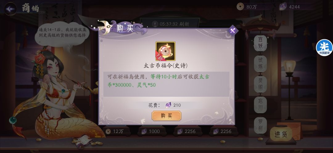 紫色,蓝色符印妖魄购买也很划算,符印收益也是巨大的,前期就是神器。