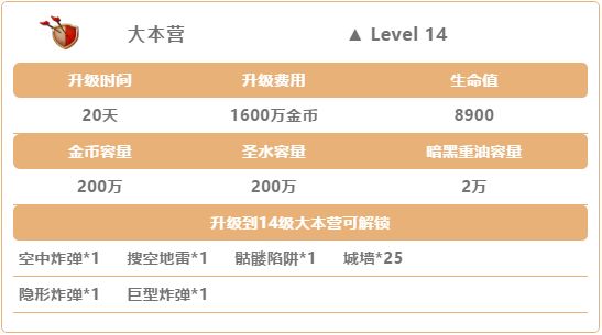那么,我们就从这个让人望而生畏的核心单位——14级大本营开始吧。