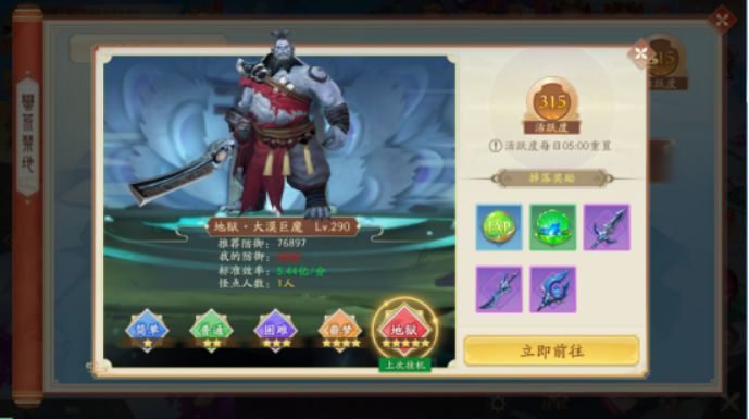 3、【蛮荒禁地】是游戏中经验和元宝产出最多的挂机点了,每天刷完任务就去蛮荒禁地挂机,挂机就会掉落元宝灵石,挂机时间越长,掉落的元宝灵石越多,活跃度不足的话,可以通过购买副本次数等方式增加;