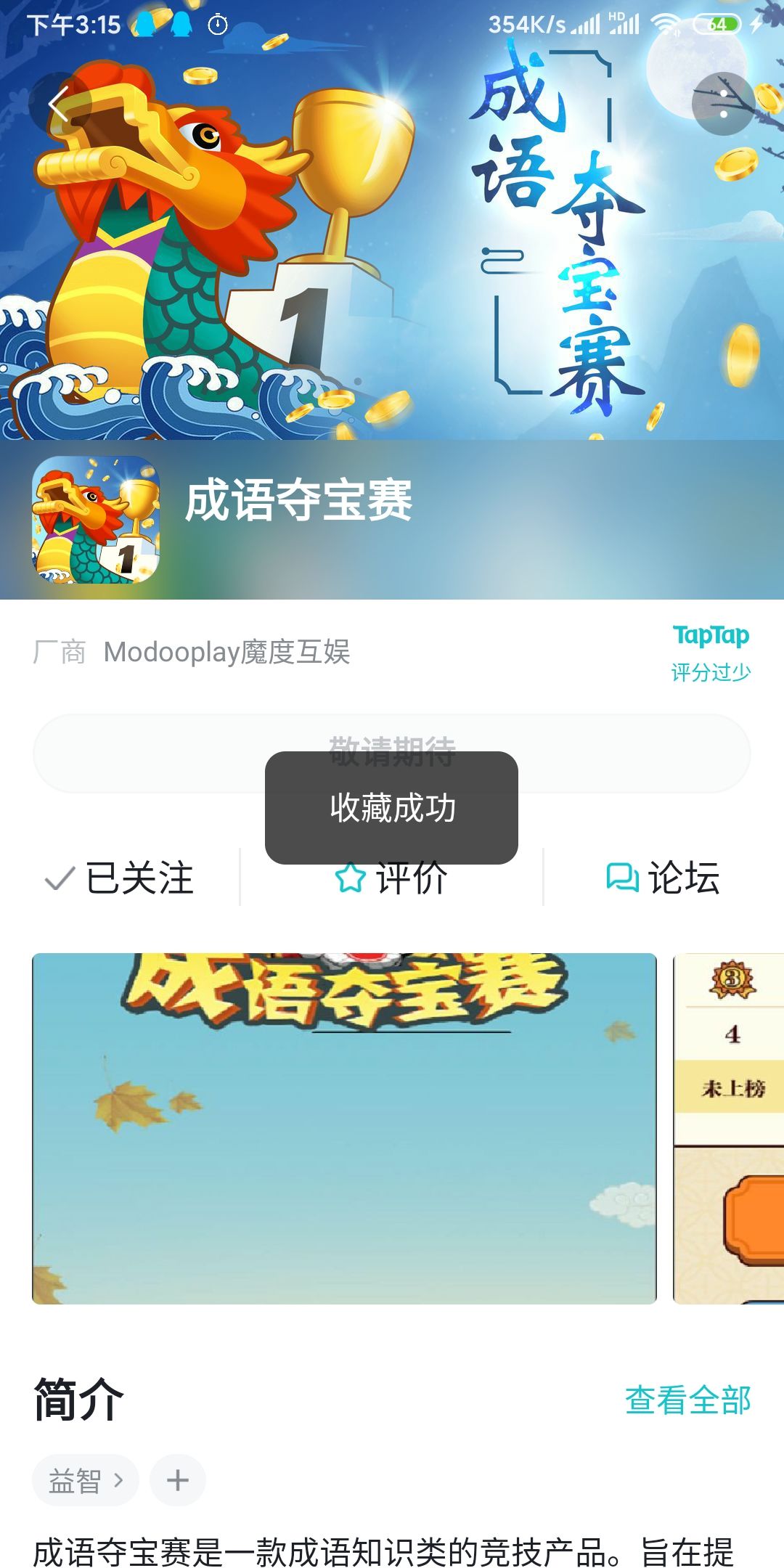 成语夺宝赛第一个关注在此发了一个帖子留下来证明截图