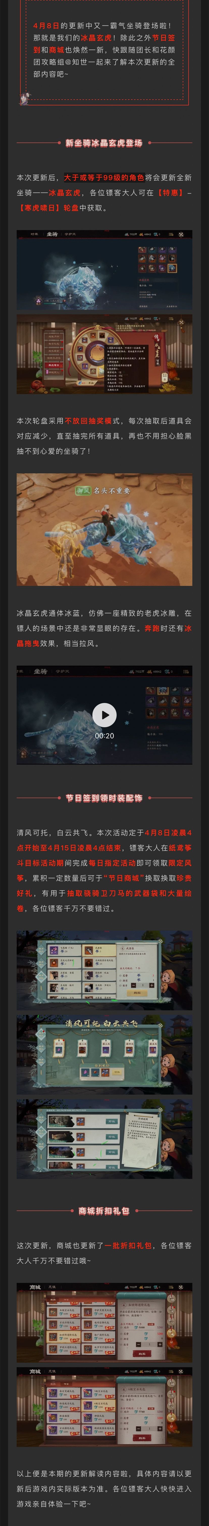 【更新解读】新坐骑冰晶玄虎登场,节日签到领时装配饰