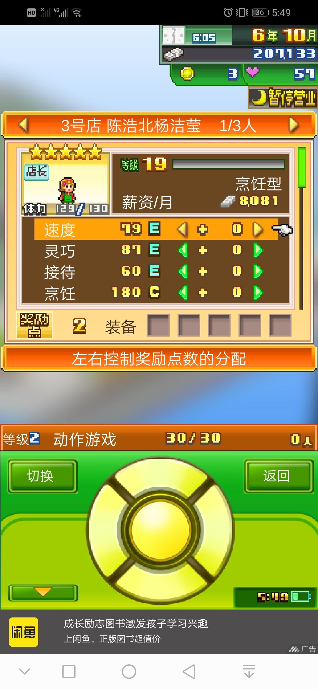 当时开三号面包店,结果老是缺货,三号店铺员工是为了应付随便招的,品质极差,二号游戏店一直被竞争对手打败,花了很多钱才扳倒了那个敌对店长,心疼,后来那店长来投奔我,三颗星烹饪型的,各个数值都很平均漂亮,我面包店正好急需,但要七个硬币,我只有6个(在前两小时内我招聘了一个员工,花了6个硬币),不甘心错过,逼不得已就退出游戏再进入来刷新。