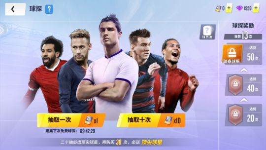 既然咱们玩的一款FIFPro授权的足球游戏,那么大家肯定是想把自己喜欢的、牛X的球员都招致麾下,打造一套自认为天下无敌的球队,但是只靠游戏免费活动获得的球员明显不能满足大家的需求,那么我们就要想别的办法了。办法很简单,也很多。第一种就是通过球探指令随机抽取球员整卡或碎片,整卡就是可以直接上场的球员,而一定数量的碎片可以合成整卡,球员卡的资质越高,合成所需的碎片数量就越多。想要抽卡,除了每天免费的一次机会外,其它时候都需要道具“顶级球探令。顶级球探令可以通过完成征程、游戏内货币兑换、参加各种活动等方式获得”,当然直接用人民币买更没毛病。当累计抽卡达到50次以后,还可以开启联赛抽卡模式,这样大家就可以有针对性的从指定联赛中获得球员了。