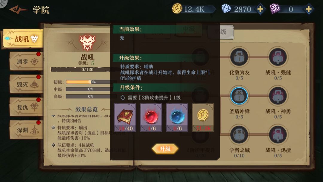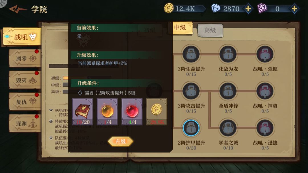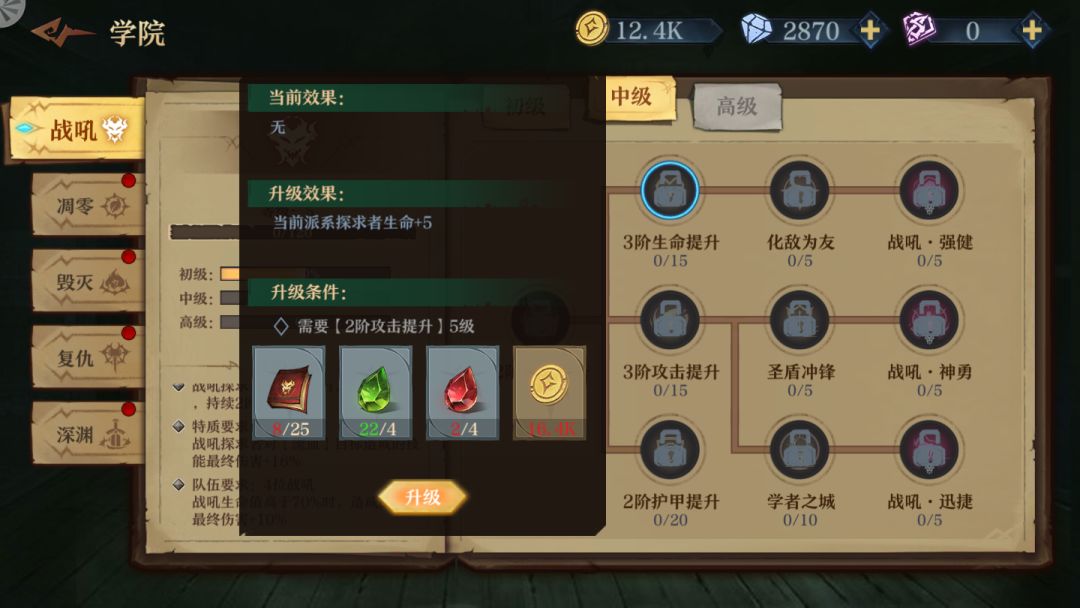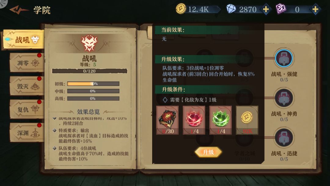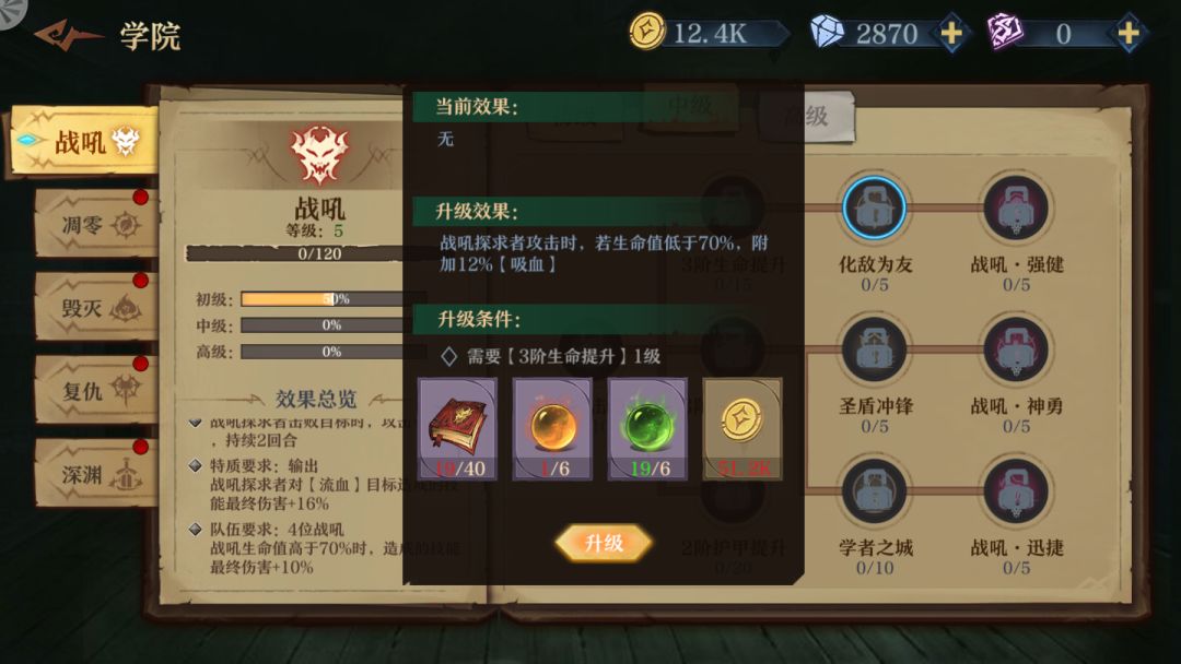 鉴于TAPTAP上面没人发 官方又没列出来 一个玩伊森艾伦流血队的战吼爱好者只能氪金把它中级技能搞出来 仅供大家参考