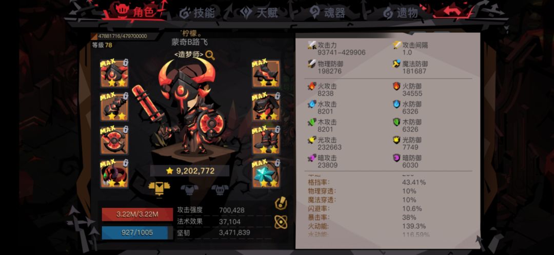 平民属性,附魔了五条生命三条光装备有两条火抗,勉强打过心灵七层,有条件尽量把光和大功的数值比我在高点