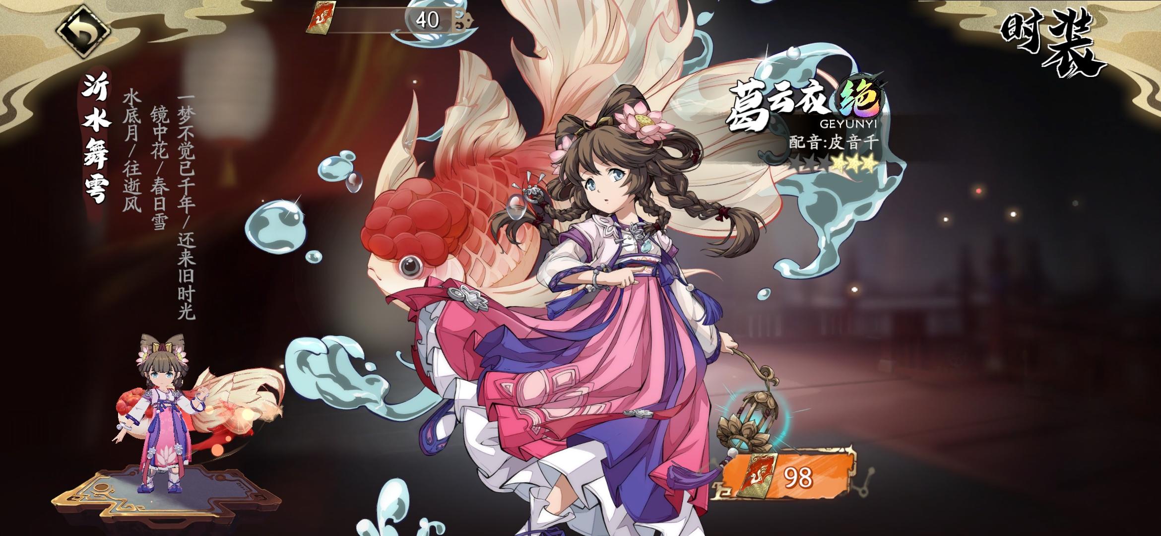 (2)皮肤:这次一共新出了4套皮肤,分别有葛云衣的、韩无砂的、紫枫的和秦惟刚。前三个角色的新皮肤都还可以,尤其是葛云衣的“锦鲤”和紫枫的“敦煌”,都比较有特点(不过我还是想吐槽,这游戏的皮肤和其他游戏的皮肤没法比啊,解牛者的皮肤都比你好)。蛇女次之,秦惟刚的略逊。