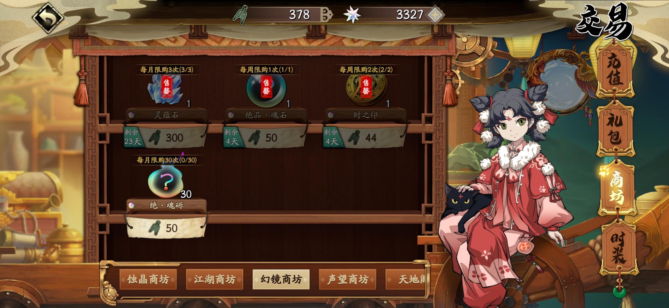 (3)天地阁、山河志和幻境PVP。这些玩法是玩家获取灵韵石和抽卡币的主要途径,按照正常刷基本可以保证每月的灵韵石和抽卡币获得完。之前玩家声望每个月可以获得3W点,现在差不多可以获得3W5点,除去灵韵石和抽卡币也可以适当地换一些低级的锻造材料(为以后新出角色攒资源)。