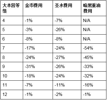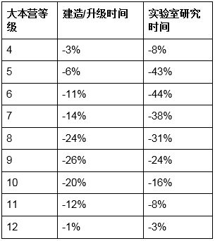 中低级大本营各项目升级时间/费用减少