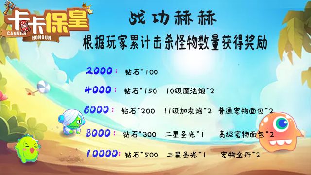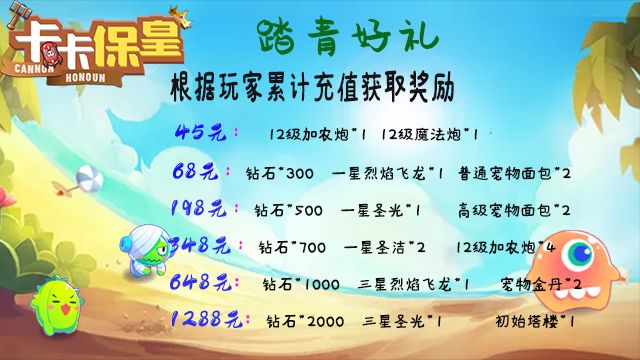 各位卡卡的大佬们,大家好!结合前几期的建议征集,本期活动奖励出现了很大的改动,首先是提高了钻石奖励和星炮奖励,然后增加了炮台碎片、宠物金丹、和初始塔楼,让玩家前期能很舒适的渡过,塔楼不管是新玩家还是老玩家都是稀缺的,这次添加的碎片力度很大哦~