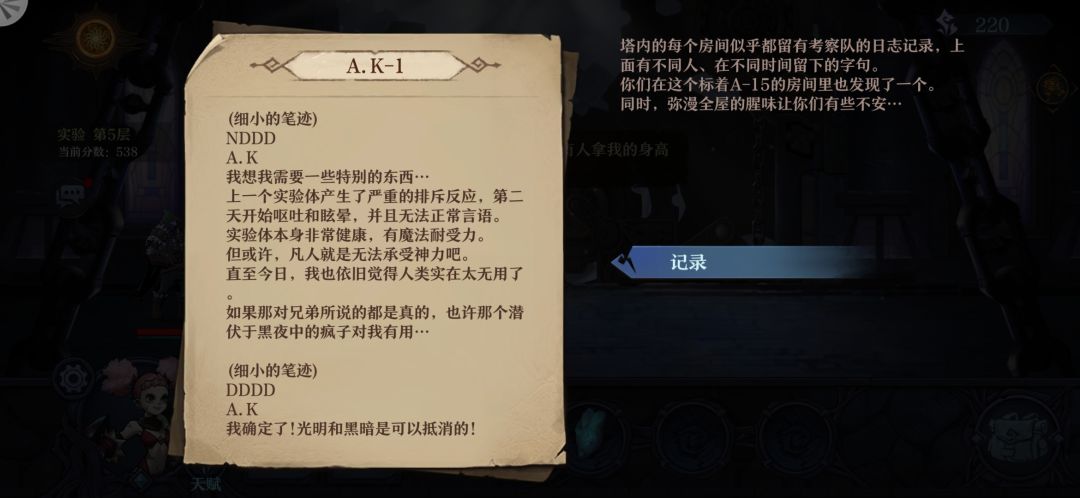 但是在光明之神和黑暗之神复活之前,考察队找到了时钟塔(时钟塔的隐蔽性大约是神王奥丁对孩子的保护),考察队试图以凡人之身掌控神明之力,下图的A.K是安士白的缩写,在游戏中有具体的表示。