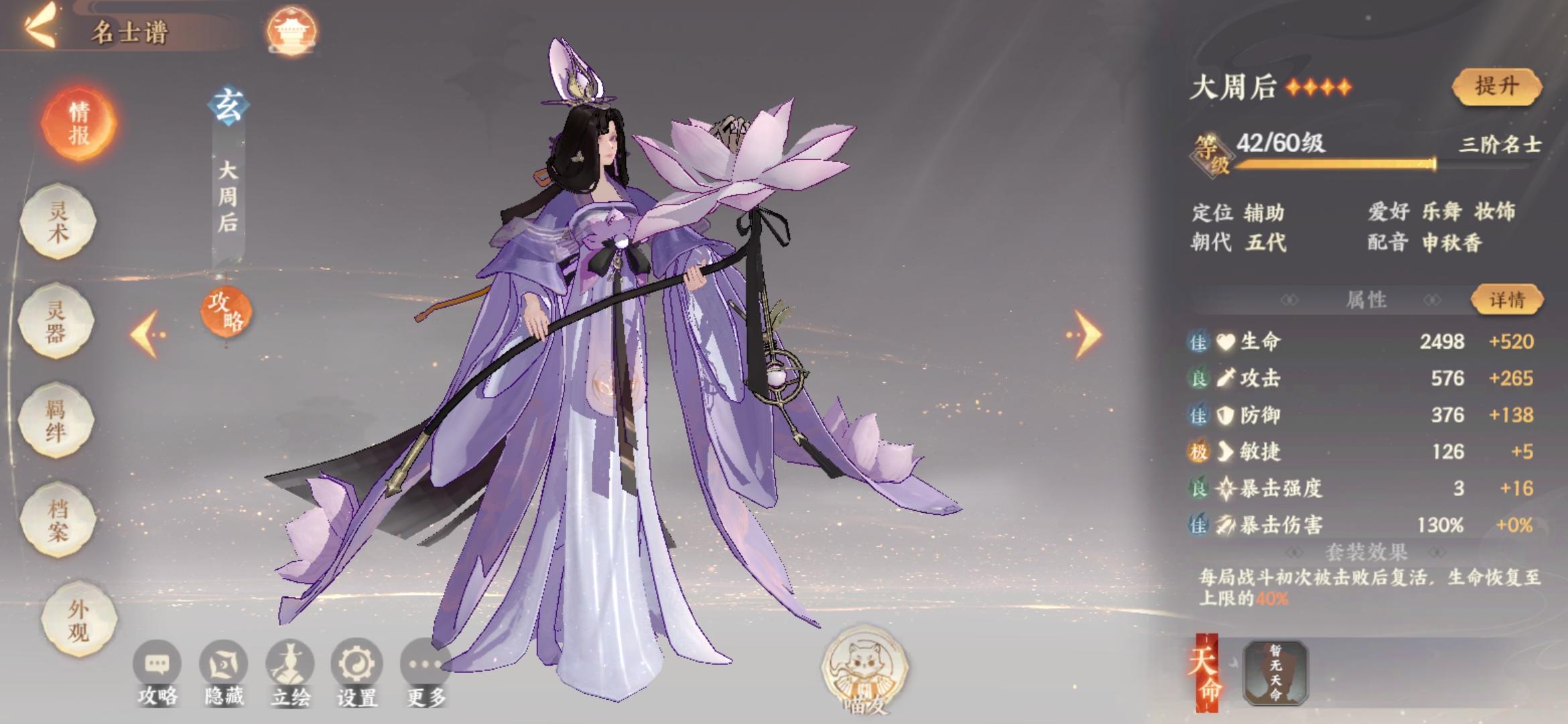我也尝试过吧武则天配天命,婉儿四十级的时候就被我抛弃了。武则天的天命真的鸡肋。