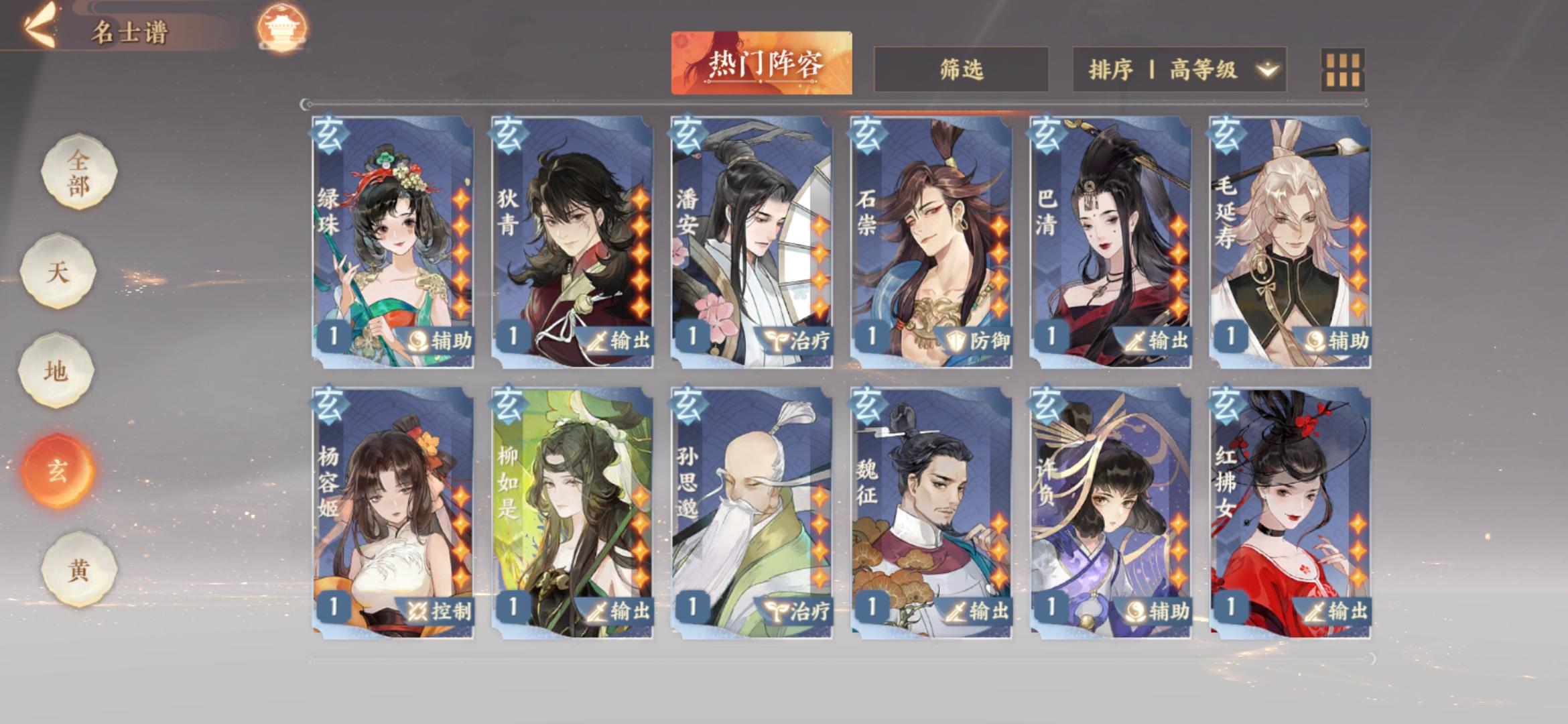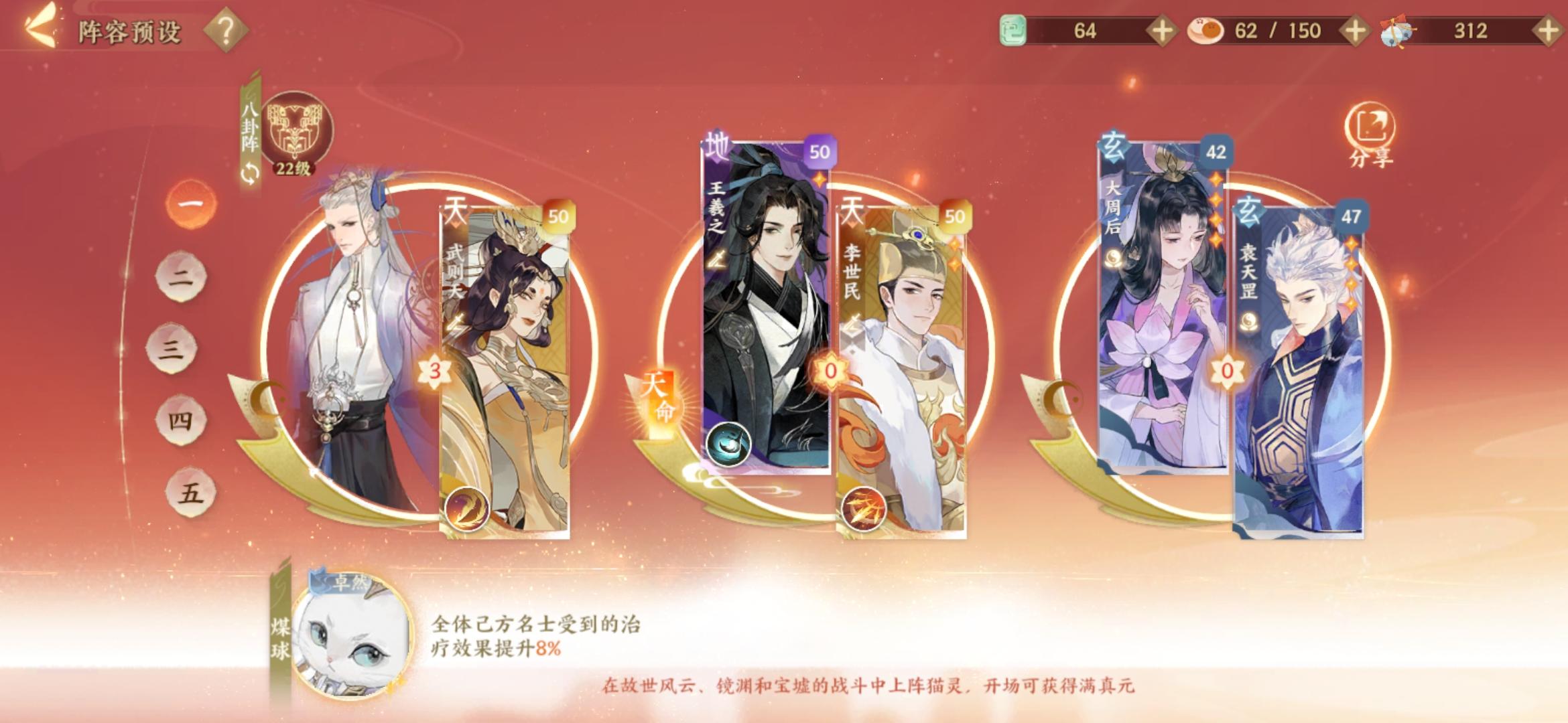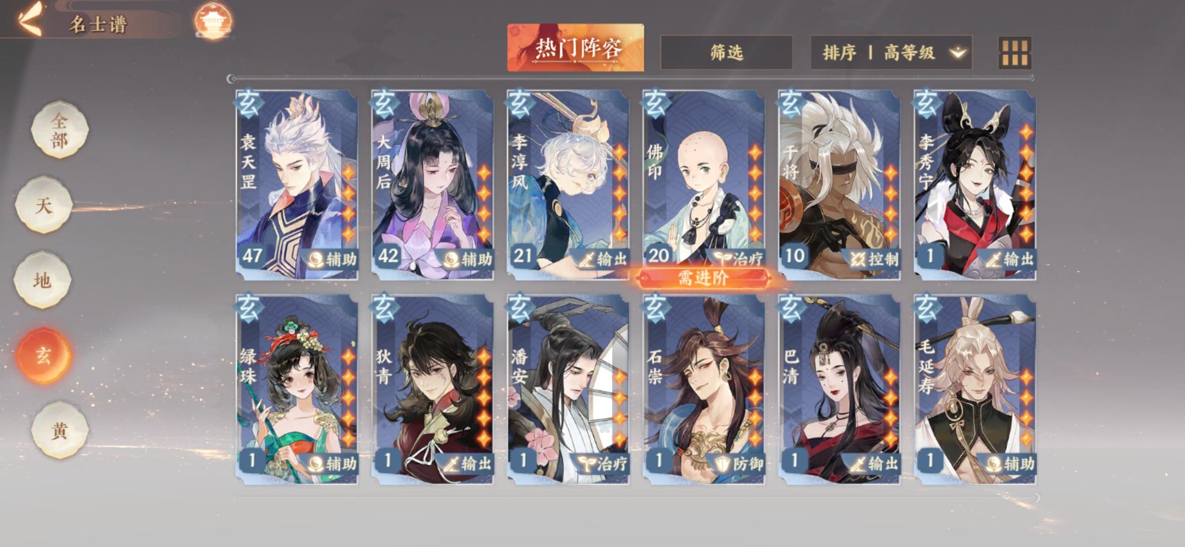 总的说一下我是怎么培养的:装备我能刷紫之后就一直在刷,今天刚刚开始刷金。体力基本上就用在镜域和装备上了。(李世民是第二天出的,有签到送了王羲之所以果断把送的佛印苏轼李淳风毙掉了)
