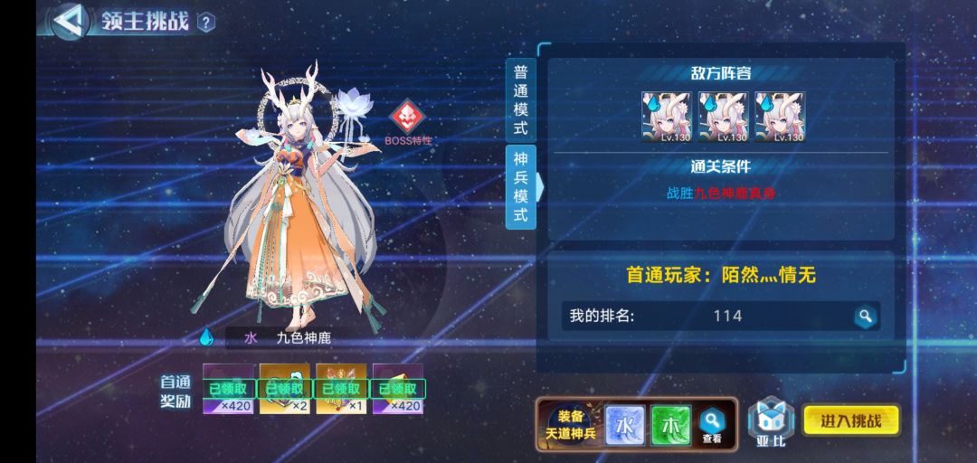 神兵模式带肉神兵,银河妖精治疗,这个比较轻松,没啥问题