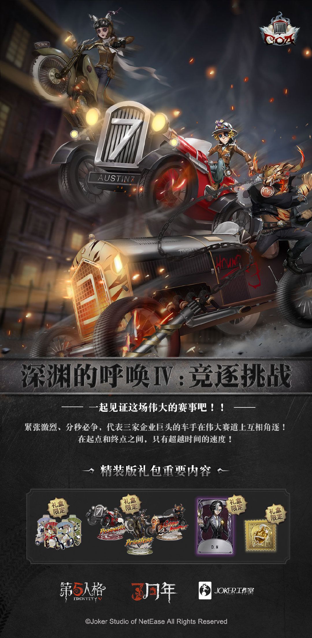 【《竞逐挑战》官方收藏画册】独家收录深渊的呼唤Ⅳ 赛车手人物设定图、周边设计稿及官方视频精美分镜画册 。