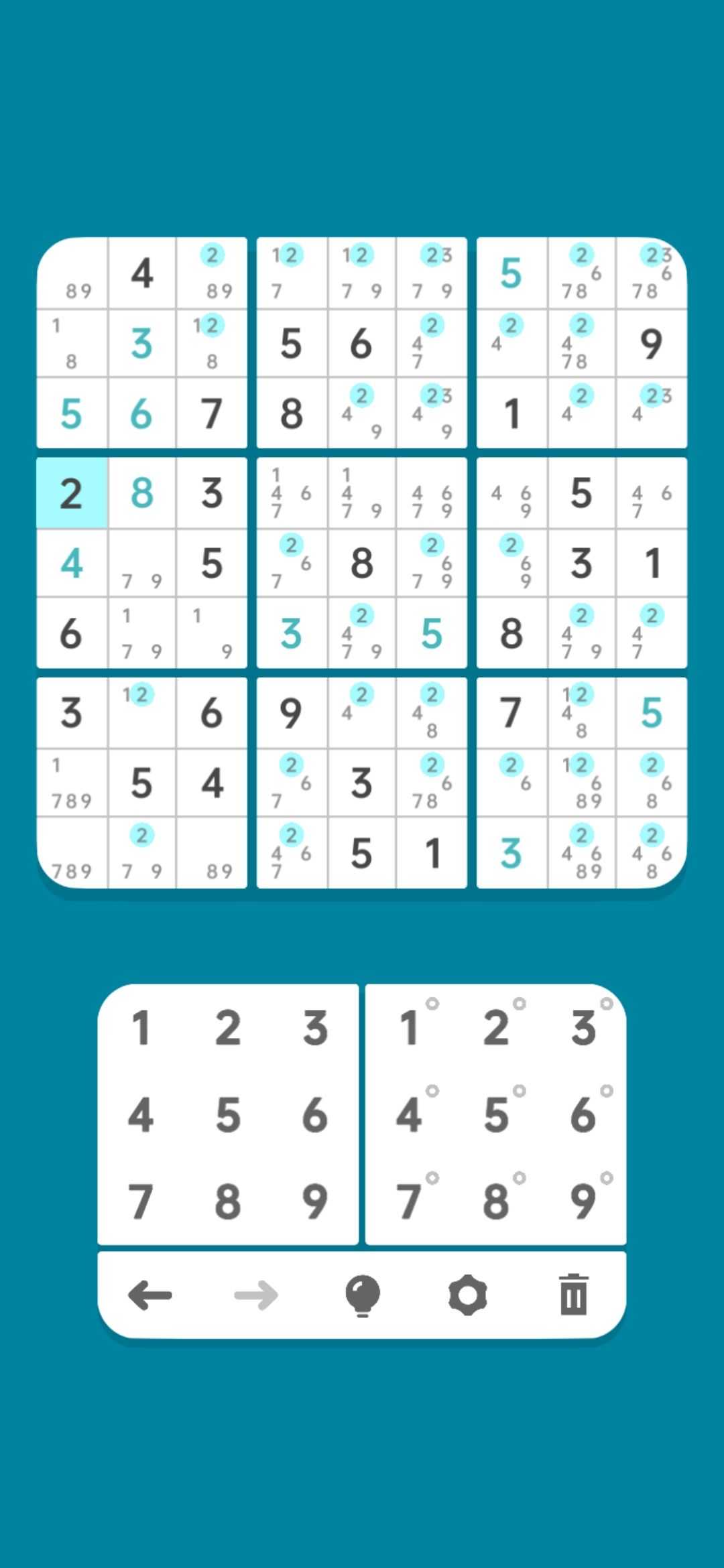 观察第三宫仅有2和4候选数的格子,由于两个格子是相同的两个候选数,那么本宫内其他格子的2和4候选数就可以排除