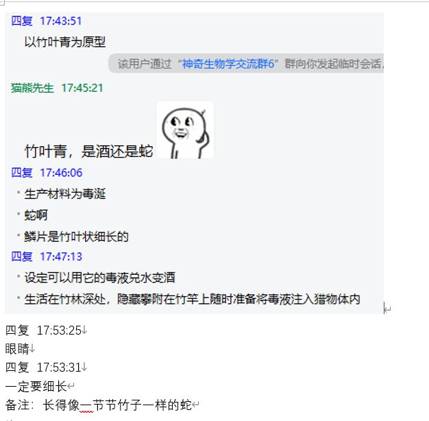 坠后,是四复同学贡献的,以竹叶青为灵感的神奇生物!