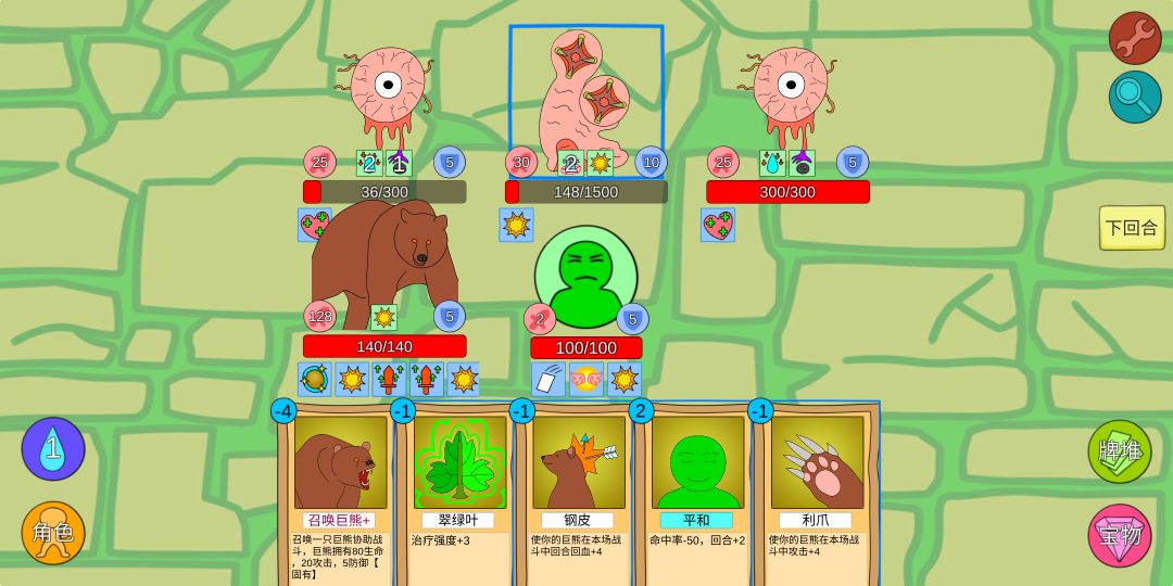 没用的牌谨慎加。各种给熊加buff,给自己加血,加点防御,升级要能量>防御>抗性。我是这么玩的,大佬勿喷。