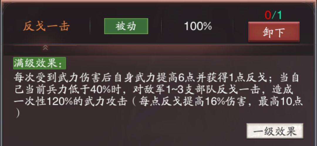 【反戈一击】建议使用【挫其锐气】【威风凛凛】【避其锋芒】之类的技能来打辅助。