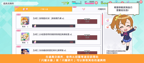 通过【招募】,还可以获得赠送的【闪耀水晶】,可以使用闪耀水晶在【道具交换所】内交换学园偶像或者道具哟~而且,当闪耀水晶过期后也不用担心,闪耀水晶会转化为【闪耀碎片】,可供换取其他的道具奖励哟~用处多多,快来招募吧~!