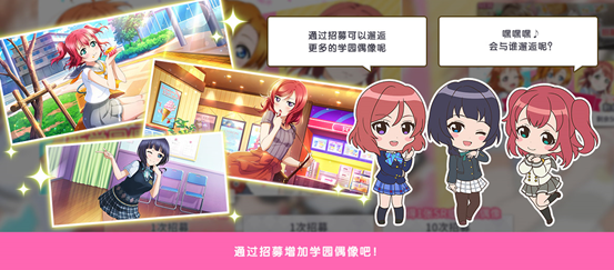通过招募,可以获得更多的学园偶像哦,与她们进行交流,加深与她们的羁绊吧!