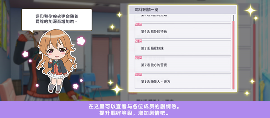 不仅如此,获得新的学园偶像或者学园偶像进行界限突破后,还可以提高与她的【羁绊等级】的上限,解锁与她之间的故事,奖励丰厚哦~