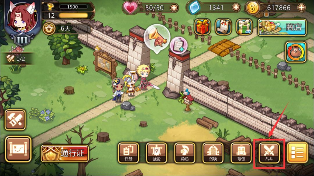 在领地界面中,可以点击“战斗”进入挑战副本界面。